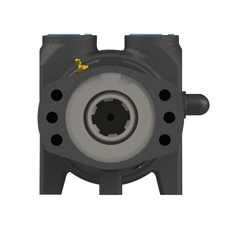 Montagem monobloco – o motor hidráulico é montado diretamente na carcaça da bomba enclausurando o eixo dispensando acoplamentos elásticos e eixos expostos.